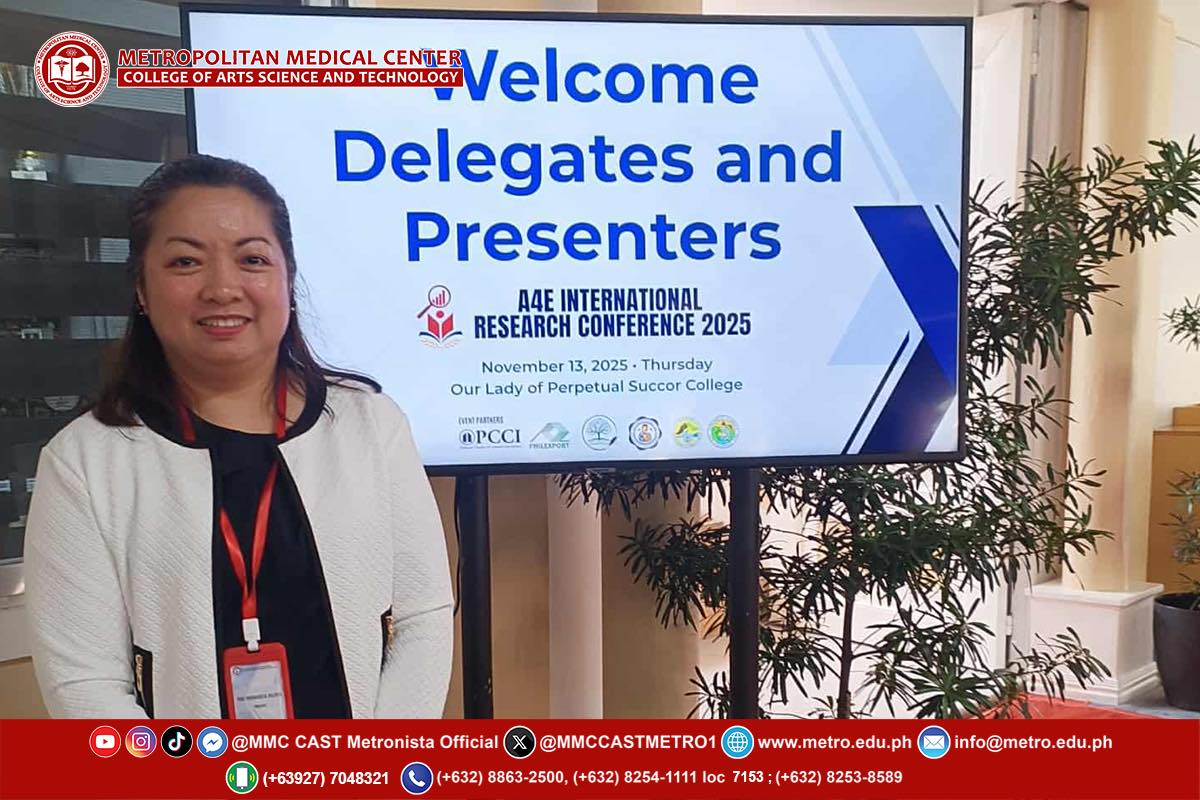 Congratulations, Dr. Socorro Milagros C. Alcancia! The Metropolitan Medical Center College of Arts, Science, and Technology (MMC CAST) proudly congratulates Dr. Socorro Milagros C. Alcancia, Head of the Office of Student Affairs, for her remarkable achievement in successfully presenting her