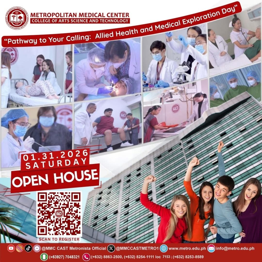 Enrollment is now ONGOING for Freshmen and Transferees for SY 2025–2026 at the Metropolitan Medical Center College of Arts, Science and Technology (MMC CAST)! Academic Programs Offered: • Doctor of Medicine • Doctor of Dental Medicine • BS Medical Technology