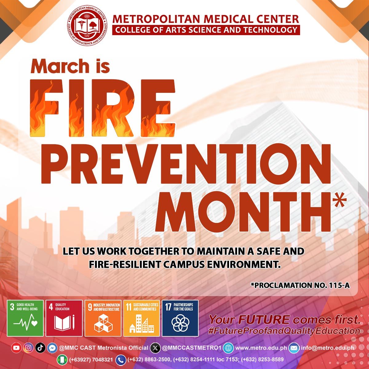 MMC CAST stands united in promoting fire safety awareness and building a fire-resilient campus community. This annual observance is in accordance with Presidential Proclamation No. 115-A, s. 1966, which designated March as Fire Prevention Month to strengthen public awareness on