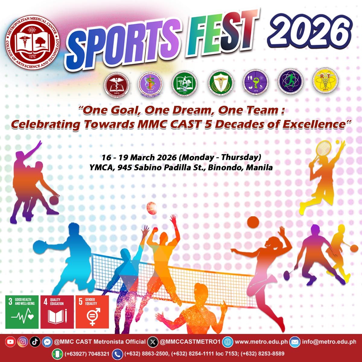 “One Goal, One Dream, One Team: Celebrating Towards MMC CAST 5 Decades of Excellence” Get ready to showcase your talent, teamwork, and school spirit this March 16–19, 2026 at the YMCA, Binondo, Manila! Calling all students and employees to be