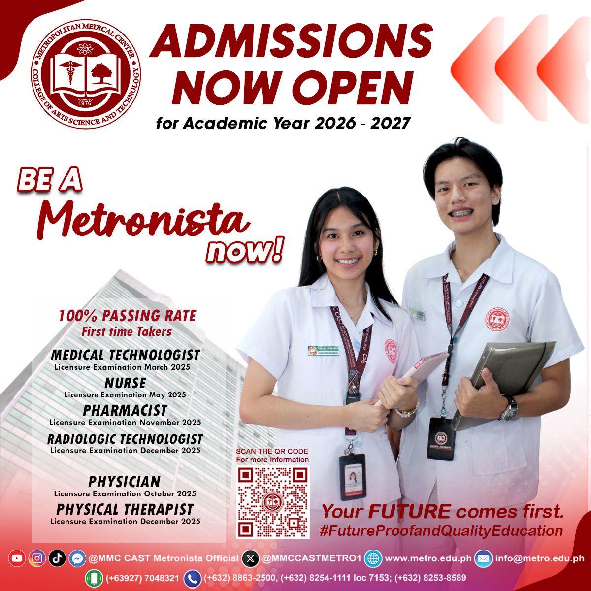Start your journey toward becoming a future health professional with Metropolitan Medical Center College of Arts, Science and Technology (MMC CAST). Admissions for School Year 2026–2027 are now officially open for Freshmen! WHY MMC CAST? Future-proof and quality education Strong